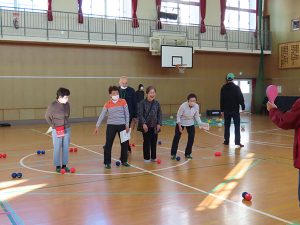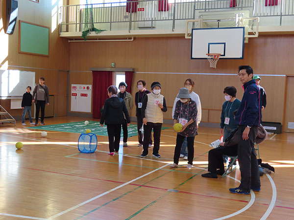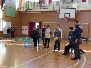 ゴムボール野球では、子どもたちがとても楽しそうに投げて、打って、走ってとめいっぱい体を動かしていました。グラウンドゴルフ、スリーアイズ、ボッチャも大変盛り上がっていました。
